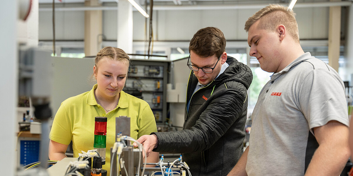Das Studium Mechatronik kombiniert die klassischen Studiengänge Maschinenbau, Elektronik und Informatik. Als Mechatronik-Ingenieur:in kannst du später mechanische Systeme zu intelligenten Maschinen und Anlagen umbauen. Viele solcher intelligenten Helfer kennst du aus deinem Alltag: Auto, Spülmaschine, Smart TV und Smartphone. Bei CLAAS geht’s natürlich etwas größer zu. Hier wirst du für die Entwicklung und Herstellung von selbstfahrenden Erntemaschinen und die Konstruktion und Fertigung von System-, Transport- und Zugfahrzeugen für den Agrarbereich ausgebildet.