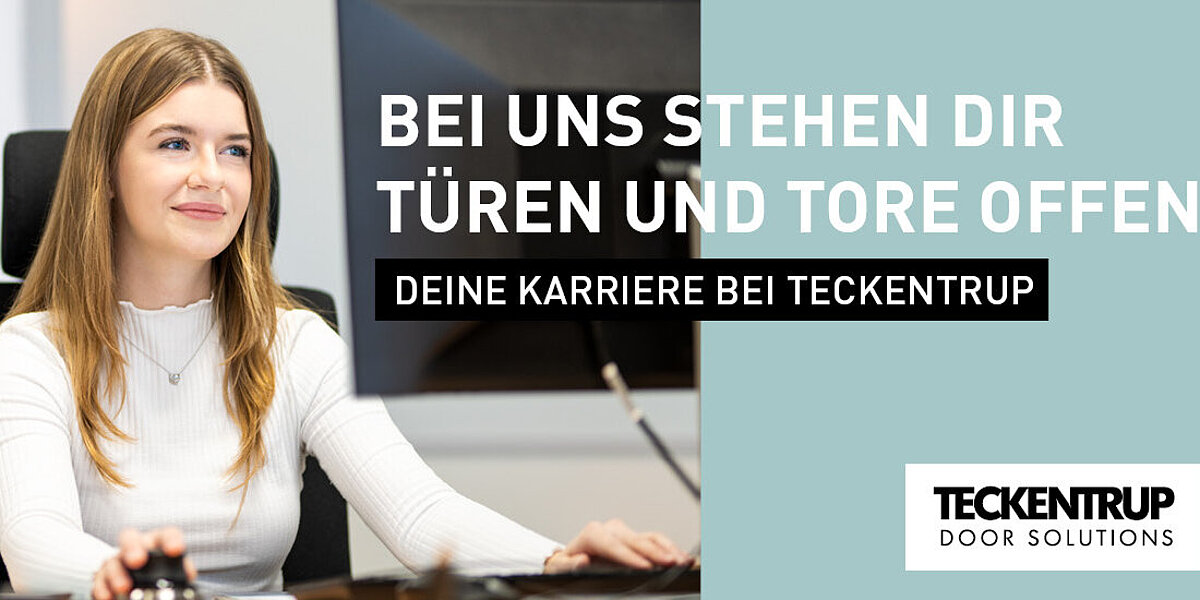Die Ausbildung bei Teckentrup öffnet dir buchstäblich alle Türen und Tore für deine Karriere. Denn nach erfolgreich abgeschlossener Ausbildung übernehmen wir unsere Auszubildenden in der Regel in ein langfristiges Beschäftigungsverhältnis mit vielfältigen Entwicklungsmöglichkeiten. Dank unserer gezielten Prüfungsvorbereitung kommst du ganz sicher gut ans Ziel. Neben einer hervorragenden Ausbildungsvergütung findest du bei uns ergänzende Sozialleistungen wie z. B. Betriebliche Altersvorsorge, Business Bike und Mitarbeiter-Rabatte sowie zusätzliche Bildungsangebote, mit denen du von Anfang an durchstarten kannst. Schlägt auch dein Herz für Teckentrup? Dann bewirb dich online über www.teckentrup.biz/karriere.