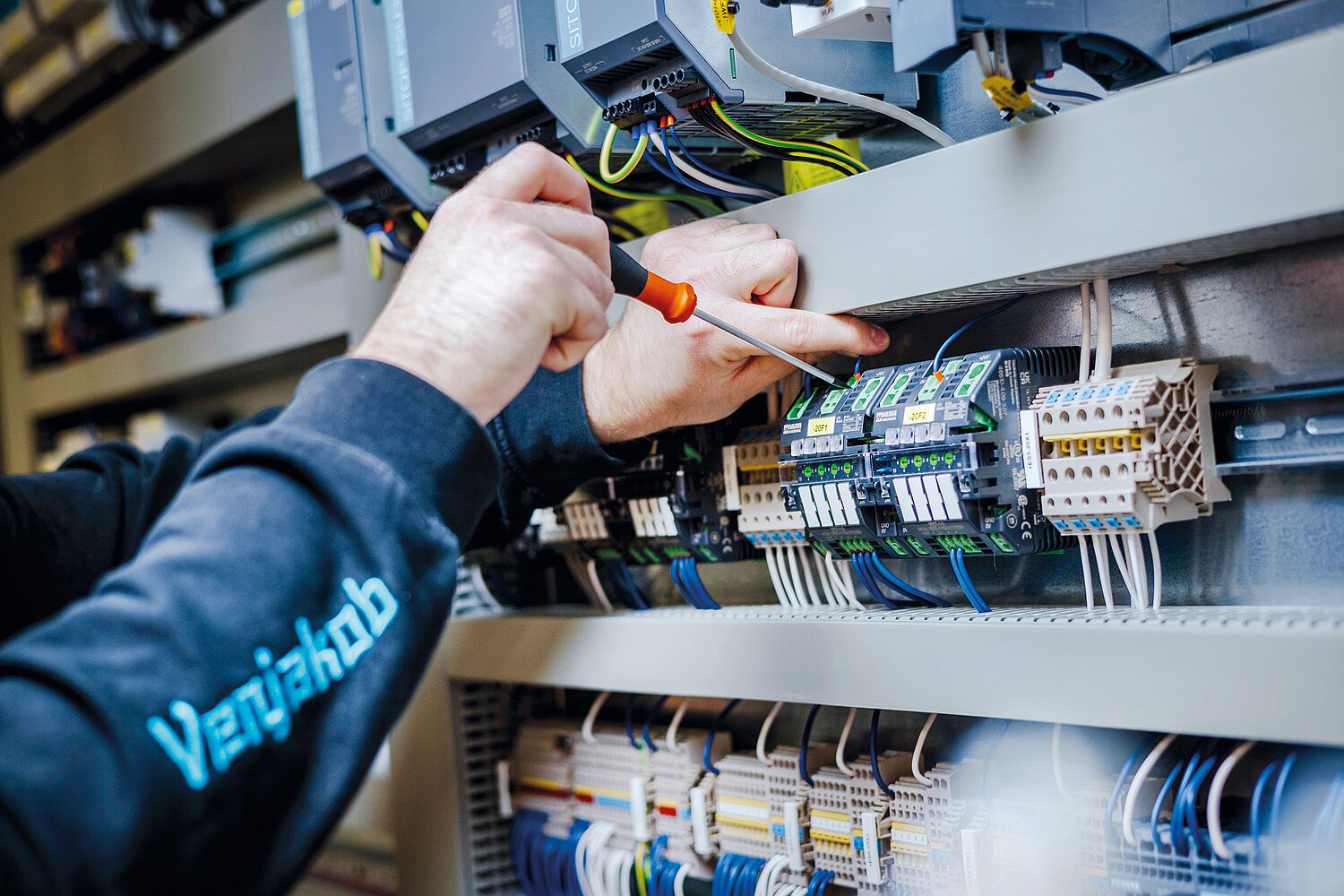 Dank seiner Praktika bei Venjakob findet Leon nicht nur den passenden Ausbildungsberuf, sondern weiß auch, dass es menschlich passt: „Hier sind alle sehr nett und offen, ich habe mich überall sofort wohlgefühlt.“ Als er sich dann um eine Ausbildung zum Mechatroniker bewirbt, profitiert er von einem weiteren Vorteil des Praktikums: „Der Meister und das gesamte Team kannten mich schon, dadurch hatte ich im Prinzip schon einen Fuß in der Tür.“ Mittlerweile steht der Azubi kurz vor der Abschlussprüfung und begleitet selbst Praktikanten bei ihren ersten Kontakten mit der Berufswelt. „Die Praktikanten werden direkt an echten Projekten im Betrieb beteiligt und dabei von den Ausbildern, Gesellen und auch uns Auszubildenden eng betreut. Viele von ihnen sehe ich dann tatsächlich später als neue Azubis wieder“, erzählt Leon, der nach der Ausbildung bei Venjakob in der Programmierabteilung übernommen wird. Und auch das ist der Flexibilität seines Arbeitgebers zu verdanken: „Ich habe während meiner Ausbildung weitere Einblicke in verschiedene Bereiche bekommen und dabei die Programmierung von Anlagen, Robotern etc. für mich entdeckt. Genau dort kann ich jetzt einsteigen und noch eine Techniker-Weiterbildung machen.“
